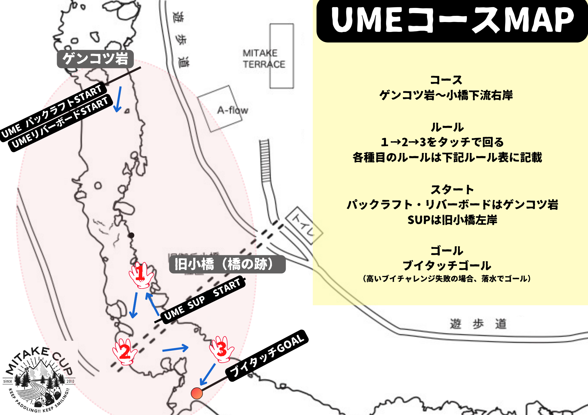 | 10/26(日) | 7:00-7:50 受付(SUP一般・UME部門) 8:00 開会式・選手ミーティング 8:30 フォアラン 9:15-10:00 SUP一般部門1本目 10:15-10:45 UME部門 11:00-11:30 受付(SUPエキスパート) 11:30 選手ミーティング(SUPエキスパート) 11:10-12:00 SUP一般部門2本目 12:30 午前の部表彰式 13:15-13:50 SUPエキスパート部門1本目 14:15-14:50 SUPエキスパート部門2本目 15:00 競技終了後、ゲート撤収(ご協力をお願いします) 16:30 午後の部表彰式 |