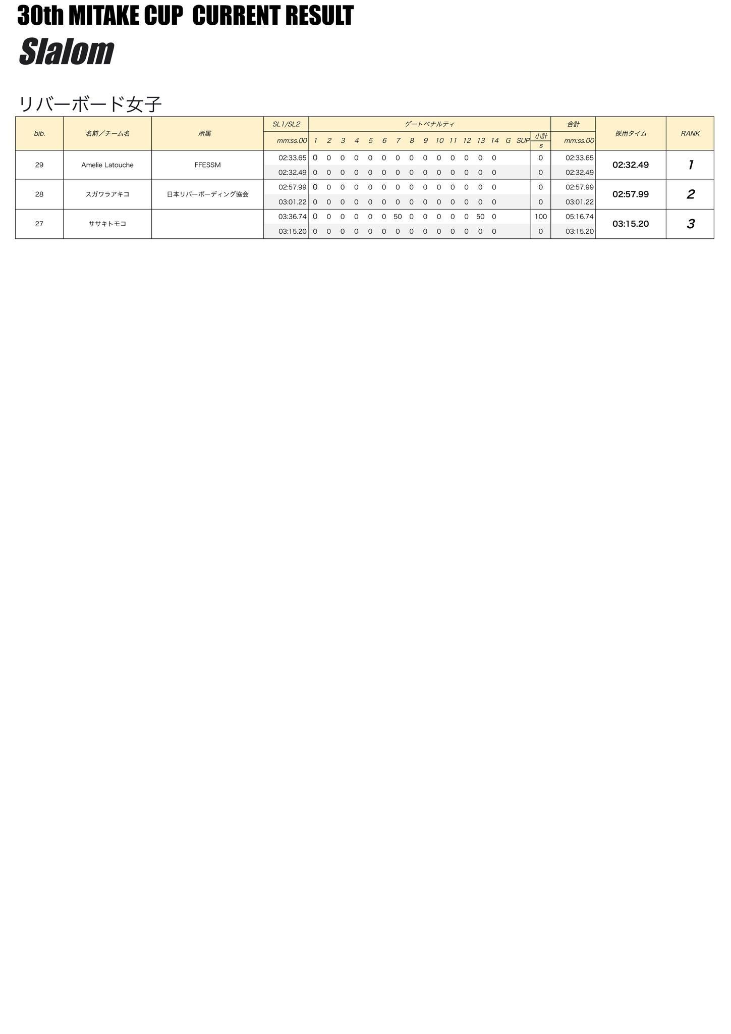 25日(土) スラローム